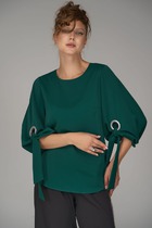Блузка с цельновыкроенным рукавом.По переду выполнен подрез с декоративной деталью.Спинка со средним швом . На боковых швах разрез. Низ разноуровневый.