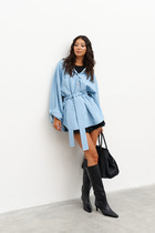 Блуза прямого силуэта.В боковых швах разрезы.Спинка со средним швом. По переду нагрудные вытачки . Горловина с V - образным вырезом , украшена декоративной вышивкой. По плечевому шву обработана кулиса с завязками из основной ткани.