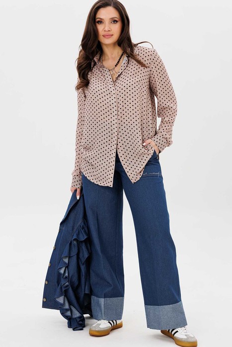 Совместные покупки Курган Женская одежда Блузки, рубашки — Блуза MisLana 1149-Р бежевая/горошки