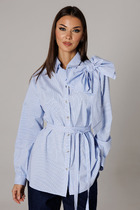 Блуза свободного силуэта со спущенными плечами, с разноуровневым низом. По переду декоративная печать. Полочка переда стягивается и фиксируется. По спинке центральный шов. Горловина круглая. Рукава одношовные втачные