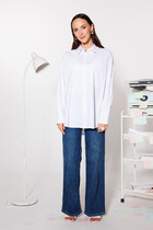 Блуза прямого силуэта. Выполнена застежка на петли и пуговицы. По горловине стояче-отложной воротник с отрезной стойкой. По спинке кокетка и склада на свободу движения. Воротник, край планки и манжета декорированы дизайнерской тесьмой.