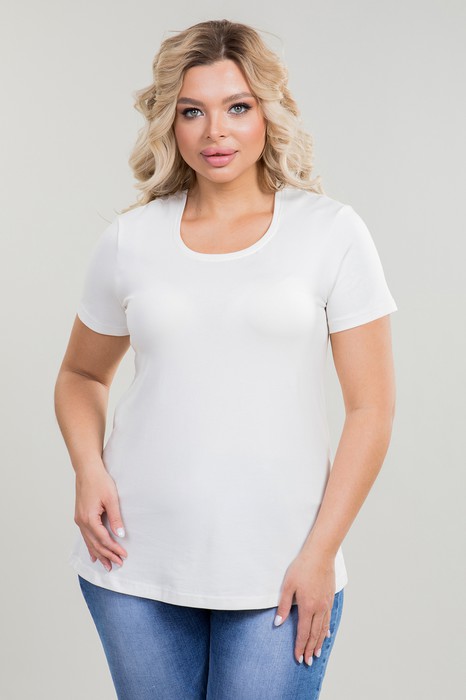 Удобная повседневная футболка с коротким рукавом, выполнена из эластичного хлопкового полотна. Перед и спинка целые. Круглый вырез горловины переда и спинки обработаны узкой притачной планкой. По шву притачивания планок проложена отделочная строчка ш.ш. 0,5 см. Длина рукава от плечевой точки в 48 р-ре – 16 см. в 60 р-ре – 21 см., ширина рукава по низу в 48 р-ре – 31 см. в 60 р-ре – 39 см. Футболка без застежек и подклада. Длина изделия по спинке в 48 р-ре – 64 см. в 60 р-ре – 68 см.