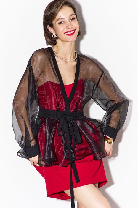 -блузка с притачным поясом по талии из отделочной ткани