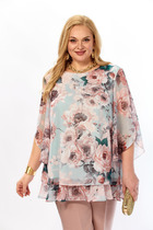 Блузка женская прямого силуэта, с втачным рукавом. Горловина v-образной формы. Отделкой служит воротничок из кружева. Застежка центральная на пять петель и пуговиц. По линии груди вытачки. Рукав длинный расширенный к низу, на притачной манжете с застежкой на петлю и пуговицу. В боковых швах обработаны разрезы.