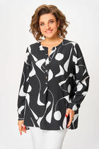 Блузка из мягкой льняной ткани с добавлением вискозы свободного силуэта со спущенной линией плеча. Полочка цельная, спинка с центральным швом. Горловина V-образной формы. Низ блузки и низ цельнокроенного рукава обработаны декоративным трикотажным довязом.