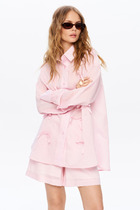 Блузка прямого силуэта с контрастными манжетами и отложным воротником. Модель выполнена из хлопка с добавлением ПЭ, благодаря этому материал почти не мнется, долго сохраняет идеальный внешний вид. На спинке изделия металлический логотип бренда.