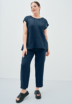 По низу переда спинки и рукава, настрочено отделочное кружево.