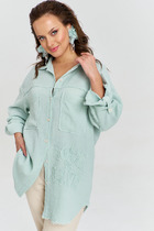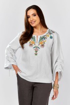 Легкая блузка из сочетания креп-шелка и креп-шифона. Изделие с воротником переходящим в красивый бант. Рукава с высокими манжетами на пуговицах. Блуза станет прекрасным выбором для создания делового образа.