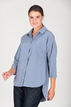 Базовая блузка из шифона, свободного кроя. Рукав длинный, втачной, с резинкой по низу. Особую оригинальность этой блузке придает бант на горловине. Эту нарядную блузку можно комбинировать и с юбкой, и с брюками.