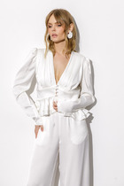Блузка прилегающего силуэта из плательной ткани с асимметричной баской.