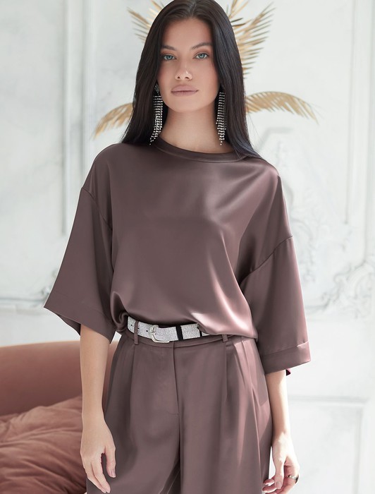 Блузка свободная из струящегося плотного сатина