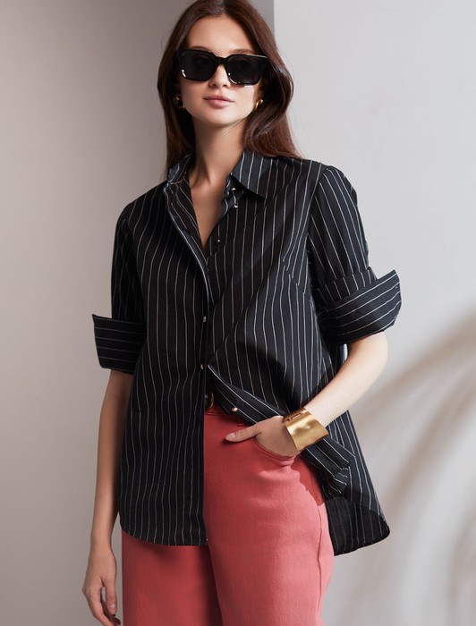 Состав: 100%Хлопок Плотность: 95 Г/м2 Параметры модели на первом фото: Рост 170, бюст 89, талия 63, бедра 92Блузка свободного силуэта выполнена из 100% хлопка. Модель черного цвета в тонкую белую полоску дополнена золотистыми рельефными пуговицами. Свободный силуэт подходит для любой фигуры. Для идеального роскошного образа используйте в качестве низа брюки светлых тонов. На спинке изделия фирменный металлический логотип бренда.