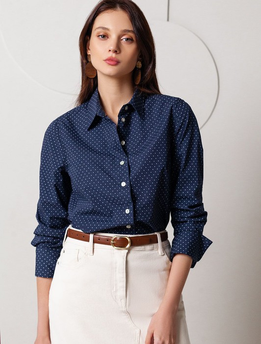 Состав: 70%Хлопок 30%ПЭ Плотность: 109 Г/м2Блузка свободного силуэта темно-синего цвета из хлопка идеально подходит для теплого сезона и порадует всех, кто ценит комфорт и стиль. Натуральный материал плотностью 109 Г/м2 обеспечивает приятное ощущение на теле и хорошо пропускает воздух, что особенно важно летом и весной. Блузка с длинным рукавом обладает высокой износостойкостью, что позволяет сохранять привлекательный внешний вид даже при регулярном использовании. Ткань хорошо держит форму после стирки и надолго остается аккуратной. Эластан в составе обеспечивает отличную посадку на любую фигуру. Классическая рубашка с отложным воротником и широкими манжетами формирует актуальный образ, подходящий как для работы, так и для повседневных прогулок. Пуговицы на планке добавляют практичности и позволяют регулировать степень открытости, что также способствует созданию различных вариантов ношения, например, в качестве второго слоя. Прямой свободный крой рубашки не сковывает движения и создает ощущение легкости, а принт в мелкий горошек делает образ выраженным, современным и подчеркивает индивидуальность. Повседневная блузка гармонично сочетается с любыми низами, что делает ее универсальной частью гардероба.