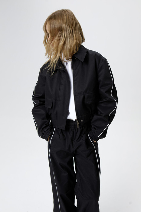 Детали: прямой силуэт, воротник, пояс переда и спинки на резинке, застежка на молнию, рукава длинные, функциональные карманы, спинка со средним швом, куртка на подкладке.