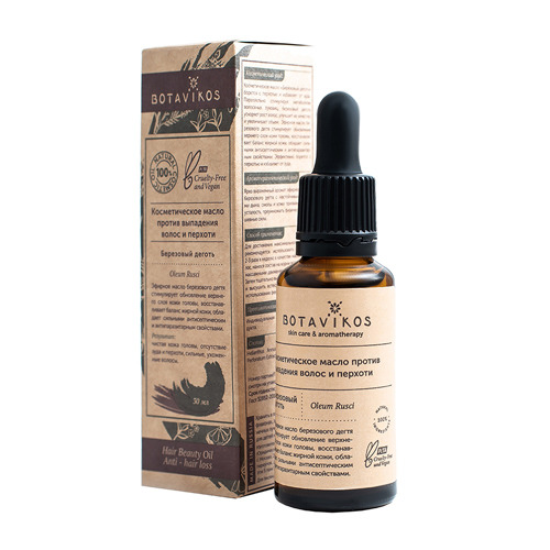 Косметический уход: эфирное масло берёзового дегтя стимулирует обновление верхнего слоя кожи головы, восстанавливает баланс жирной кожи, обладает сильными антисептическими и антипаразитарными свойствами. Эффективно борется с перхотью и избавляет от зуда. Параллельно стимулируя метаболизм волосяных луковиц, берёзовый дёготь ускоряет рост волос, улучшает их качество и увеличивает объём. Тщательно подобранные дополнительные активные ингредиенты в составе формулы - растительные масла зверобоя и семян подсолнечника - оказывают успокаивающее действие на кожу головы, укрепляют волосы, препятствуя выпадению и ускоряя их рост. Эфирное масло берёзового дёгтя стимулирует обновление верхнего слоя кожи головы, восстанавливает баланс жирной кожи, обладает сильными антисептическими и антипаразитарными свойствами. Эффективно борется с перхотью и избавляет от зуда. Параллельно стимулируя метаболизм волосяных луковиц, берёзовый дёготь ускоряет рост волос, улучшает их качество и увеличивает объём.