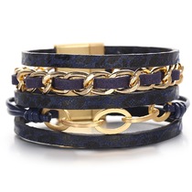 Браслет, кожа , сталь, ALBW167син