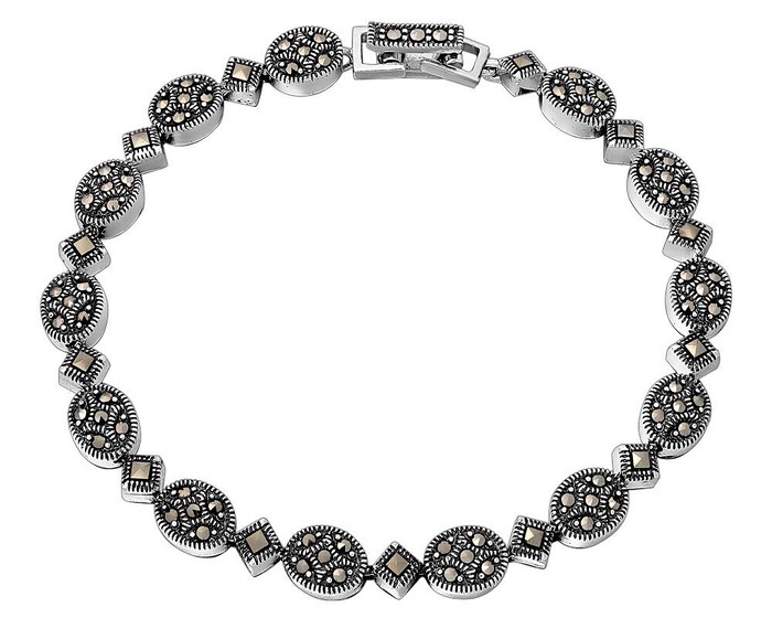 Вес: 17.05 г Вставка: Марказит Цвет камня: Серый Производство: Таиланд Покрытие: Оксидирование Количество: 2Браслет, арт.656343 Серебро Серебро 925, р. 21.5, 17,05 гр., марказит