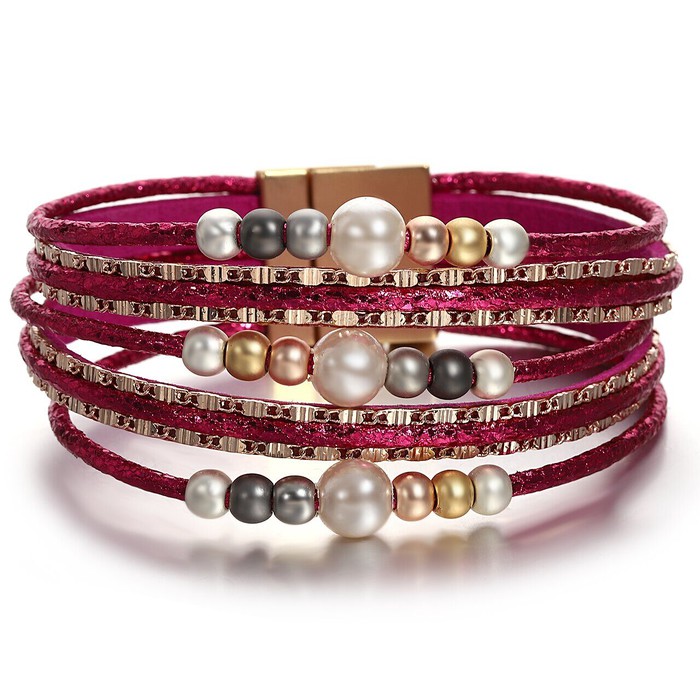 Браслет, арт.656957 , р. 18, 0 гр., жемчуг swarovski , кожа , сталь