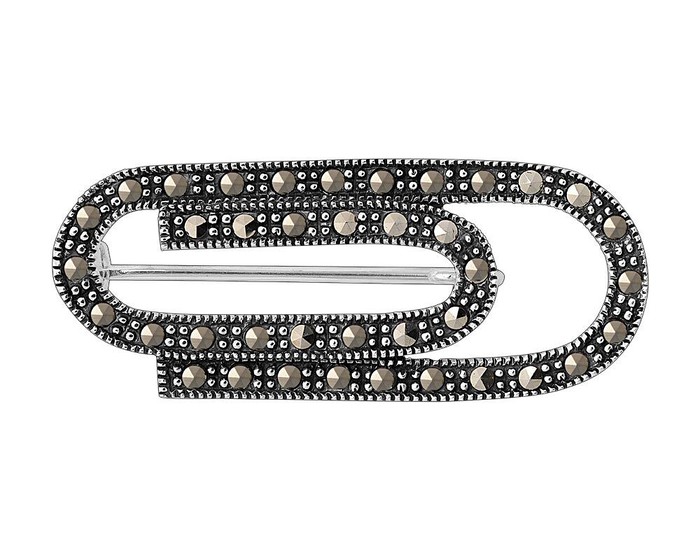 Вес: 4.36 г Вставка: Марказит Цвет камня: Серый Производство: Таиланд Покрытие: Оксидирование Количество: 10Брошь, арт.656347 Серебро Серебро 925, 4,36 гр., марказит