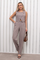Элегантные брюки на резинке, дополняют модель удобные карманы.