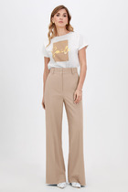 Натуральные льняные штаны в спортивном стиле с боковыми карманами и поясом на широкой резинке.
