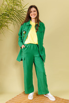 Спортивные брючки из ткани с натуральными волокнами. Резинка по верху и по низу. В боковых швах карманы.