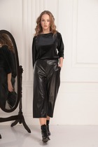Элегантные,  с высокой посадкой и красивым облеганием бедра брюки. Застроченные стрелки прилают стройности и шика. Низ брюк умеренно широкий. Ноги при таком крое учеличиваются в длине. Застежка на потайную тесьму-молнию в  боковом шве.