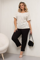 Укороченные брюки кюлоты - идеальный вариант для создания модного образа! Они прекрасно сочетаются как с деловыми жакетами, блузками, так и с повседневными вещами. Изготовленные из вискозы со льном, они приятно прилегают к телу и не сковывают движения. Высокая посадка и широкие штанины придают им оригинальности и создают впечатление изысканности. Пояс частично с резинкой, застёжка на молнию обеспечивают удобство в носке. Не упустите возможность выглядеть стильно и модно с помощью этих брюк кюлотов.