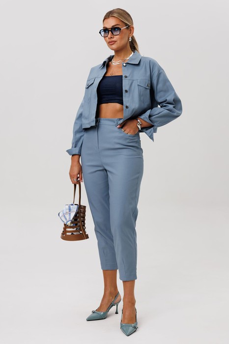 Брюки от Анелли в цвете «горная роса» с высокой посадкой и длиной до середины щиколотки мягко заужаются к низу, создавая современный и выигрышный силуэт. Спереди расположены карманы, а застёжка-гульфик на молнии и пояс с кнопкой обеспечивают удобство. Спинка оформлена фигурной кокеткой и настрочными карманами. Резинка на поясе по спинке гарантирует идеальную посадку.