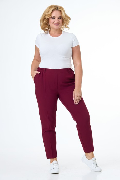 Брюки классического покроя, средняя посадка с боковыми функциональными карманами. Притачной пояс с эластичной тесьмой внутри без застежки.