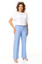 Брюки прямого, свободного кроя. Выполнены из хлопкового полотна цвета "Хаки". Характеристики: прямой крой, пояс на резинке с кулиской, в боковых щвах карманы. Сзади нашито два функциональных кармана. По переду и сздали брюк две прошитые строчки. Длина по боковому шву 107см