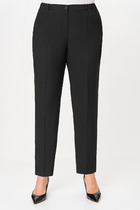 Брюки прямого кроя, выполнены из фактурной эко-кожи бордового цвета. Характеристика: прямой крой, пояс на резинке, спереди есть имитация гульфика, без подкладки, в боковых швах карманы. Длина изделия по боковому шву 96 см.
