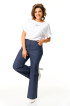 Застроченные стрелки создают вертикаль для удлинения ножек. Пояс притачной, с островком на эластичной резинке для Вашего комфорта. Брюки с имитацией гульфика, с карманами-хулиганами. Низ изделия обработан широкой подгибкой. На карманах и внизу брюк отделка из киперной тесьмы контрастного цвета.