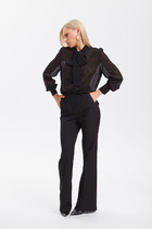 Отрезная кокетка на задней части брюк делает их посадку идеальной. Пояс на резинке, с островком. Для Вашего удобства выполнены карманы хулиганы. Низ брюк обработан подгибкой. Брюки подчеркивают вашу женственность и дарят ощущение комфорта и уверенности в себе.