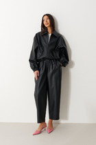 27.03 Vilatte Брюки mom fit из эластичного хлопка с покрытием под кожу D24.274