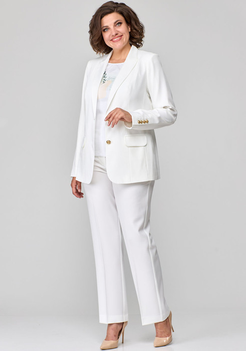 Брюки прямые,классические, с заутюженными стрелками,по переду обработаны карманы с отрезным бочком,застежка на тесьму-молнию и 1 пуговицу.На задних половинках обработаны вытачки и имитация карманов с листочкой, пояс в брюках притачной. Длина брюк от талии по боковому шву 100 см. К брюкам рекомендуем жакет 205-арт. 2 80 22