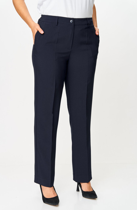 Брюки прямые,классические, с заутюженными стрелками,по переду обработаны карманы с отрезным бочком,застежка на тесьму-молнию и 1 пуговицу.На задних половинках обработаны вытачки и имитация карманов с листочкой, пояс в брюках притачной. Длина брюк от талии по боковому шву 100 см. К брюкам рекомендуем жакет 203-арт. 2 78 22 или 205-арт.2 80 22