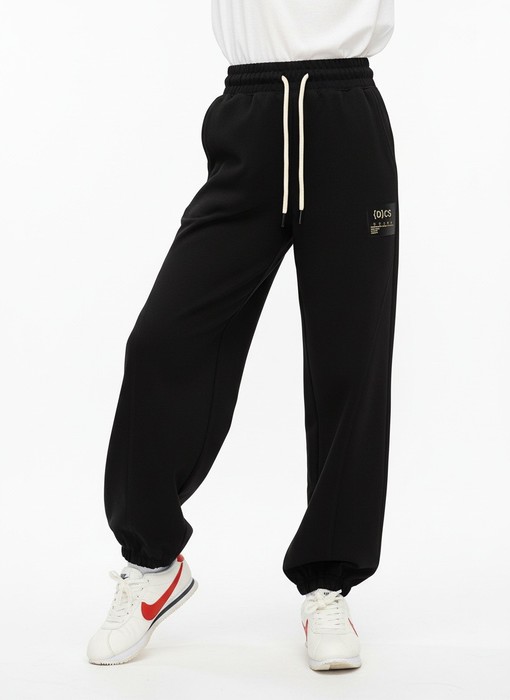 Брюки для девочки из трикотажного полотна "футер-двунитка", на притачном поясе с эластичной тесьмой внутри, с карманами в боковых швах и отделочными деталями фигурной формы на передних половинах. Нижние срезы брюк обработаны с эластичной тесьмой. По швам притачивания отделочных деталей, декоративных вставок и карманам настрочены отделочные строчки. На правой передней половине брюк ниже уровня колена настрочен декоративный элемент прямоугольной формы. Через две петли в центре пояса продет шнурок, позволяющий регулировать степень прилегания изделия по талии.
