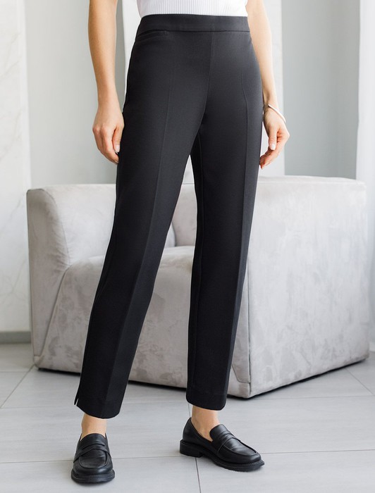 Состав: 50%Хлопок 30%ПУ 20%ПЭ Плотность: 390 Г/м2Брюки-дудочки выполнены из джерси. Модель дополнена резинкой сзади, одним вместительным карманом спереди и небольшими боковыми разрезами. Заутюженные стрелки и посадка на талии визуально вытягивают силуэт. Изделие хорошо держит форму, отлично тянется и почти не мнется во время использования. Идеальный вариант в офис или в повседневный классический стиль.