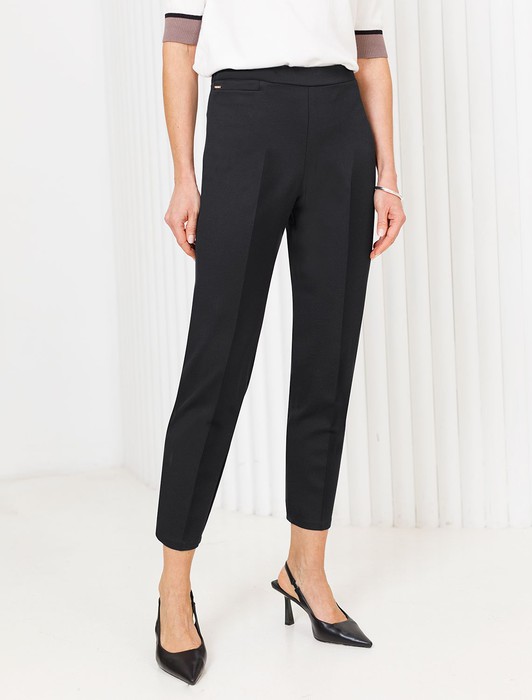 Состав: 50%Хлопок 30%ПУ 20%ПЭ Плотность: 310 Г/м2Брюки - дудочки выполнены из плотного джерси. Высокая посадка и стрелки зрительно увеличивают рост и визуально стройнят. Модель дополнена сзади эластичным поясом на резинке и боковыми разрезами по низу штанин. Лаконичные брюки станут идеальным дополнением базового гардероба. С легкостью дополнят строгий офисный стиль и повседневный аутфит.