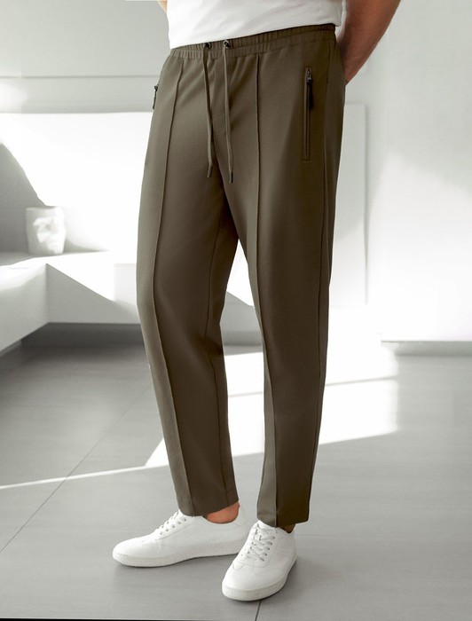 Состав: 75%Хлопок 20%ПЭ 5%ПУ Плотность: 240 Г/м2 Размер товара на первом фото: 42Свободные джоггеры цвета хаки созданы для максимального комфорта на каждый день. Брюки выполнены из натуральной ткани — премиального футера двухнитки, дополнены эластичным поясом со шнуром, двумя карманами на молнии по боками и задним карманом с минималистичной вышивкой в тон брюкам. Перевод надписи Wanderlust - Страсть к путешествиям . Брюки визуально вытягивают силуэт за счет декоративных застроченных стрелок. Эластичный качественный хлопок обеспечивает приятное ощущение, прилегая к телу, а также позволяет коже дышать. Ткань отличается высокой износостойкостью, не деформируется после стирки, сохраняет форму и внешний вид даже при активной носке. Повседневные спортивные штаны подходят для любого роста и комплекции благодаря представленной широкой размерной линейке. Подойдут на худых парней и мужчин в теле. Брюки правильного кроя, будут удобными для повседневной носки, не стесняя движений - идеальный выбор для отдыха дома, путешествий, для активной работы или прогулок. Трикотажные зауженные брюки отлично сочетаются с разными стилями одежды: от спортивного до кэжуал, с футболками и свитшотами. Это незаменимые джоггеры в современном гардеробе мужчины.