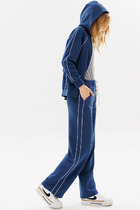 Прямые брюки (спортивные штаны) свободного силуэта с функциональными карманами в боковых швах выполнены из высококачественного футера 3-х нитки класса "пенье". Лицевая сторона ткани гладная, изнанка - петлеобразная. Пояс брюк полностью на резинке.
