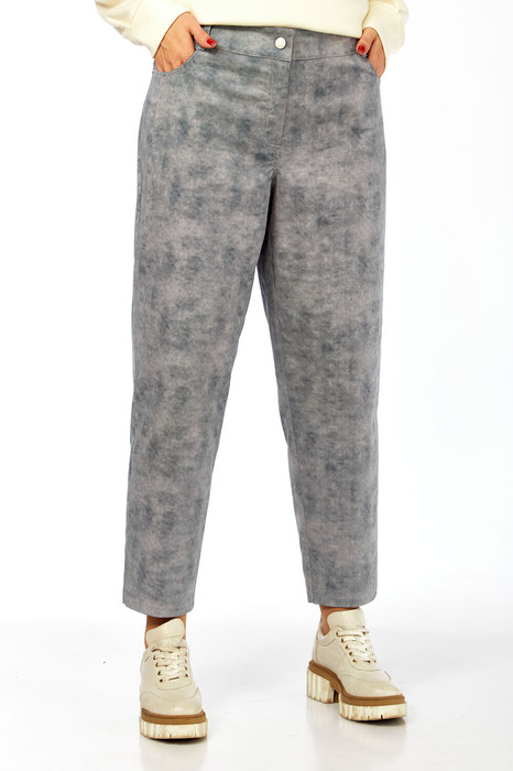 Брюки женские,  изготовлены из хлопковой костюмной ткани под джинс. В брюках обработан пояс, застежка на тесьму-молнию и петлю-пуговицу. На задней части брюк кокетка и накладные карманы. На передней части боковые карманы.