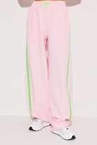 Широкие брюки с высокой посадкой, с поясом на резинке. По бокам настрочена отделочная тесьма. Брюки двухцветные. По задним половинкам брюк накладные карманы.