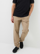 Брюки мужские из фактурного полотна на притачном поясе с эластичной тесьмой внутри, с карманами в боковых швах. Средний шов передней половины выполнен с имитацией застежки "гульфик". Для регулирования степени прилегания изделия в области талии предусмотрен шнурок из основной ткани, вставленный в пояс через две обметанные петли. Нижние срезы брюк обработагны подгибкой.