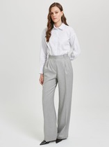 Брюки женские из трикотажного полотна «футер-двунитка», длинные, полуприлегающего силуэта, на притачном поясе с эластичной тесьмой внутри и карманами в боковых швах. Передние половины застрочены по центральным линиям, на задних половинах обработаны две вытачки в области талии.