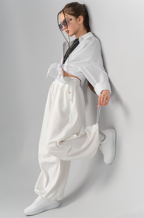 Однотонные белые багги идеальны для прогулок и отдыха на свежем воздухе. Детские штаны парашюты дарят свободу и стиль каждый день.