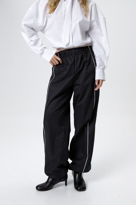 Детали: высокая посадка, функциональные карманы, пояс и низ брюк с резинкой и регулируемыми фиксаторами.