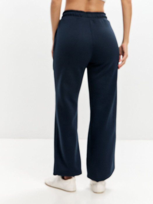 Женские брюки изготовлены из хлопкового трикотажного полотна с изнаночным начесом. Широкие брючины заужены книзу на эластичную тесьму. Строчка по передним половинкам, имитирующая стрелку, выгодно вытягивает силуэт брюк. Удобные карманы выполнены в боковых швах. Пояс брюк широкий, по линии талии собран на эластичную резинку, длина пояса дополнительно регулируется шнуром.