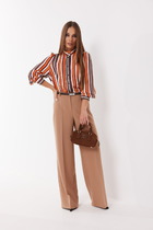 По спинке брюки оснащены резинкой, что позволяет добиться комфортной посадки по фигуре. В боковых швах есть карманы.